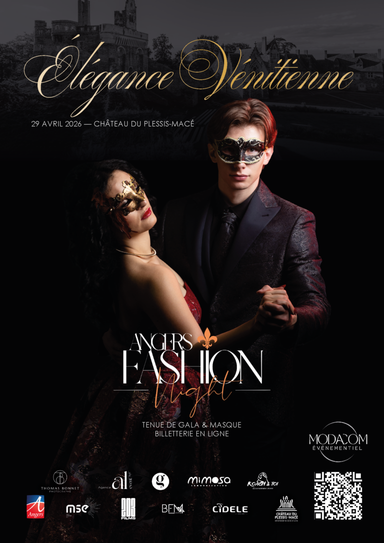 L’édition 2026 d’Angers Fashion Night met à l’honneur la thématique : Élégance Vénitienne. Masques raffinés, tissus somptueux et détails dorés créent une atmosphère mystérieuse et sophistiquée où la mode, l’art et la créativité se rencontrent pour célébrer le raffinement et l’expression personnelle.